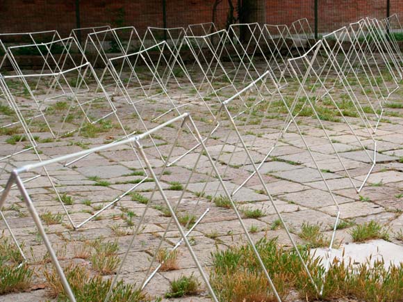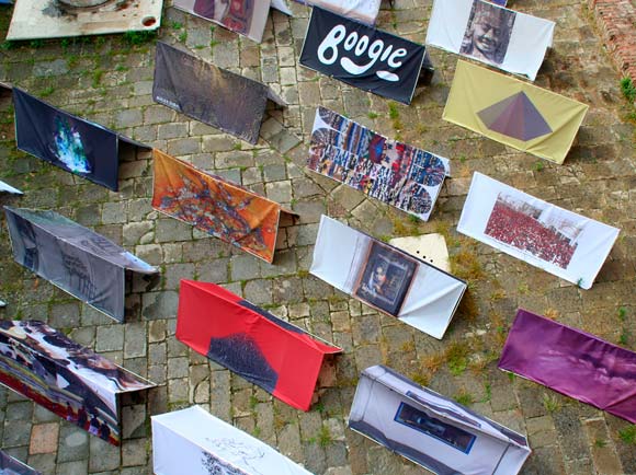 By decision of the curators, tents were not exposed with the real original materials proposed. For this work, the original knitted material was not used, but a photograph of it instead.