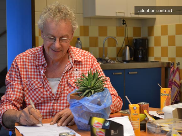 Finding adoptive parents was defined during the residency to finish in a public event where the plants were delivered. Besides, there was exhibited the photographic record of the whole process of preparation, travel and origin place; certifications; travel permitions and the adoption contracts signed by every people who adopted one of the plants, by the event organizers and the artist. The project was covered by the Noord - Hollands Dagblad newspaper.