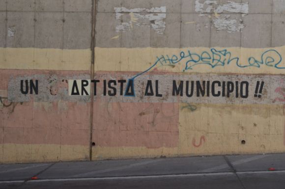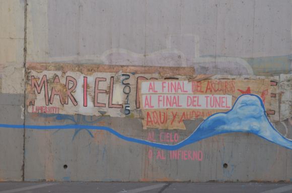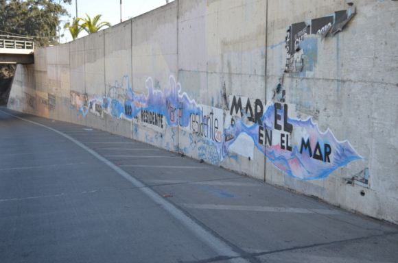 I intervened some already existing and anonymous banners and graffiti in the public space of La Serena, Chile. I intervened a wall already painted with an autonomous, non-invasive, subtle design. I was interested in the freedom of expression contained in these previous graffitis. Emphasizes the purely pictorial and linear, minimally involving icons that reflect the concepts of crossing, tunnel, landscape, mountain range; rapprochement between the city of San Juan and La Serena.