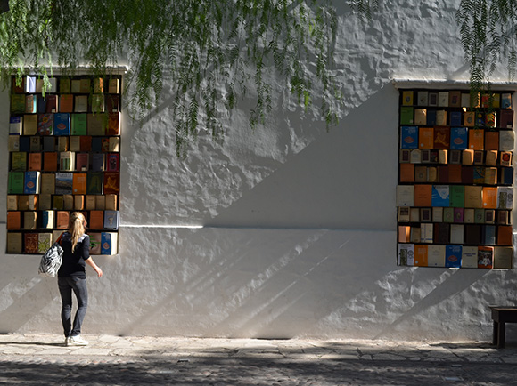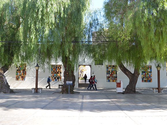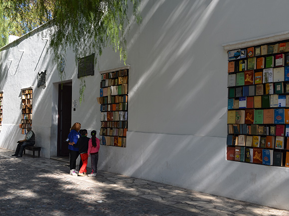 Libros diferentes en formato, tamaño, vejez, origen, color, autor y editorial se instalaron en estas ventanas con la intención de enfatizar estas aberturas del edificio entendiéndolas como espacios intersticiales que conectan el mundo exterior con la intimidad albergada dentro de la Casa Natal de nuestro prócer Sarmiento.